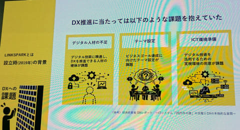 LINKSPARK OSAKAは、顧客のDXを推進し、新たな価値を創造する拠点として2019年に設立された。設立の背景にあったのは、既存システムの老朽化やIT人材不足が懸念される「2025年の崖」だ。この壁を乗り越えるためにDXを推進することが経営課題のひとつとなり、「そのために必要な人材やDXのテーマ設定、そしてICT環境の整備をサポートするためにLINKSPARK OSAKAを設立した」と北村氏は語る。