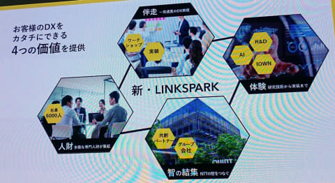智の結集については、NTT西日本のオープンイノベーション施設「QUINTBRIDGE」やNTT研究所、さらには地域の大学や研究機関とも連携してグループ内外の知見を結集。「開発中のサービスや自社DXなどで蓄積したノウハウを活用することで、顧客の利益向上を加速していきたい」(北村氏)としている。