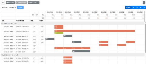 新機能は、MENTENA上で管理されている日常の点検・保全・修繕データを起点に、定期修理(定修)や法定点検、自主点検を含む作業計画/履歴のスケジュールを10年分表示し、俯瞰(ふかん)できる。年単位での計画策定や予実管理を前提としており、設備数が多い事業所でも、中長期の作業計画の全体像を直感的に把握でき、人員やコストの平準化を図れる。