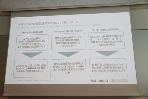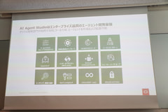 その中でもAI Agent Studioに期待することについては、アプリケーションの標準サービスの中に入っているため、簡単にAI機能を追加できることを小西氏は挙げた。「日本や企業の独自要件で、これまでかゆい所に手が届かなかった部分があったので、AI Agent Studioがありがたい」(小西氏)。