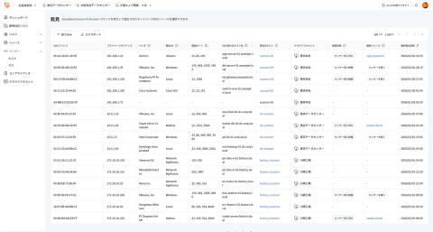 組織のネットワーク内にある資産を自動で検出する「発見」機能は、Cloudbase Sensorを通じて同一ネットワーク内の資産を自動的に検出し、IPアドレスやMACアドレス、推定OSなどの情報を収集する。これにより実態に即した資産情報を収集でき、円滑なCloudbase Sensorの導入をサポートする。