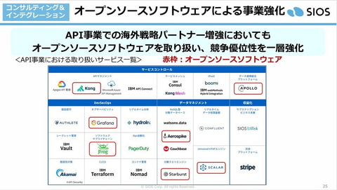 OSSによる事業強化については、API事業での海外戦略パートナー増強においてもこれを取り扱い、競争優位性を高める。APIエコノミーの主要製品はOSSを基盤とするものが多く、「当社がOSSに精通していることは、API導入から運用・拡張まで一貫した支援を可能にする強みになる」と喜多氏は語る。