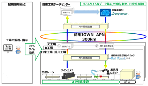 NTT西日本、NTTドコモビジネス、日東工業の3社、IOWN APNを活用して約300km離れた工場の画像認識AIによる外観検査に成功
