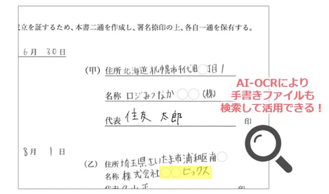 今回の新版では、AI-OCR技術によって手書き文字も検索可能となった。紙に書かれた情報をデジタル化し、テキストデータとして検索できるため、古い契約書・図面・ノウハウなどの社内に眠っていたアナログ情報をデジタル資産化し、有効に活用できるという。また、従来のOCR機能に比べて認識精度が向上し、複数言語が混在するファイルにも対応できるようになったことから、実用性が向上したとしている。
