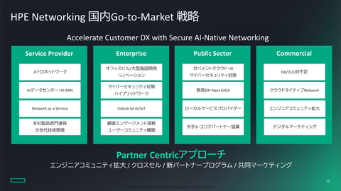 続いて、HPE 執行役員 HPE Networking 事業統括本部長の本田昌和氏が登壇し、国内での戦略と取り組みについて説明した。「昨年11月にHPEとJuniper Networksの日本法人の企業統合が完了し、今年1月からは営業組織も一つに統合した。新たな体制では、サービスプロバイダー、エンタープライズ、パブリックセクター、コマーシャルの4つのセグメント別に組織を再編し、国内におけるHPE Networking事業を推進していく。特に、エンタープライズとパブリックセクターは、成長セグメントと位置付けている。また、すべてのセグメントにおいて、引き続きパートナーと連携して顧客へのアプローチを行い、パートナーのチャネルを通じてJuniper Networks製品の拡販を図る」との方針を示した。