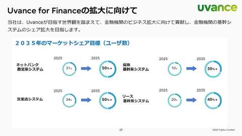また、2030年度には、金融機関向けUvanceビジネスで売上高2000億円を目指す計画も公表した。金融機関向けビジネスの約半分をUvanceが占めることになる。
