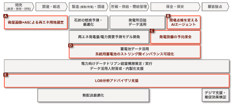 リニューアルでは、検討開始から効果を実感するまでのリードタイムを短縮できるよう、最短2~3カ月で効果検証(PoC)が可能なソリューションを新たに追加した。衛星画像を活用した再生可能エネルギーの発電用地選定や、熟練工の技術継承を支援するAIエージェントなど、計5つの新たなソリューションを通じて、電力業界のDXやAI活用を加速する。