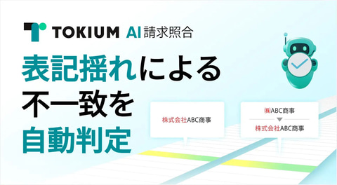 株式会社TOKIUMは3日、発注データと請求データの照合作業を自動化するAIエージェント「TOKIUM AI請求照合」において、表記揺れによる不一致をAIが自動で判定する機能を追加したと発表した。