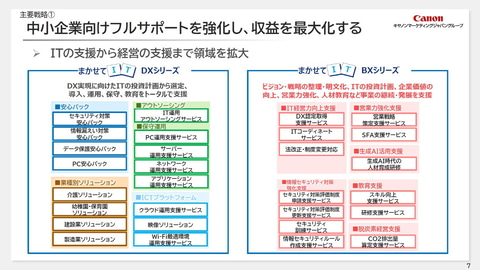 今後は、キヤノンS&Sの人材高度化、体制の進化により、キヤノングループ独自のソリューションとして提供する体制を整備。複合機やビジネスPCなどとのクロスセルの提案に注力し、販売単価を高め、収益性の向上を図るという。また、「まかせてIT BX/DXシリーズ」のラインアップ強化を図る考えも明らかにした。