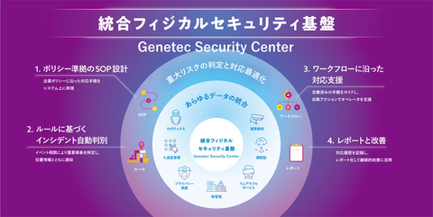 「Genetec Security Center」は、入退室管理、ビデオ監視、自動ナンバープレート識別(ALPR)、通信機能などの個別セキュリティシステムの運用を統合管理できるセキュリティプラットフォーム。単なるイベント監視にとどまらず、データの統合から、セキュリティポリシーの管理、重要事項への対応、調査業務の支援までを包括的にサポートするという。