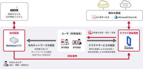 このほか、「NetAttest EPS」「Soliton OneGate」といったソリトンの認証関連製品を活用した認証環境の設計・構築から運用窓口の支援までを、IIJが一貫して提供する点も特徴。認証基盤をソリューションとしてパッケージ化することで、導入に伴う検討や調整の負荷を軽減し、スムーズな導入を可能とするほか、高いセキュリティレベルが求められる組織でも、環境や規模に応じた柔軟な構成で導入できるとしている。