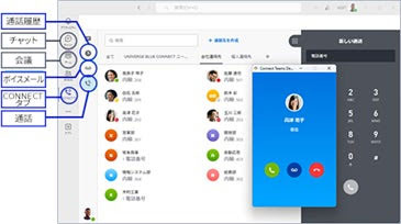 これにより利用者は、会議・チャット・ファイル共有・通話といった機能をMicrosoft Teams内で一元的に利用・管理できるほか、Microsoft 365と連携し、AzureからUNIVERGE BLUE CONNECTデスクトップおよびモバイルアプリケーションへ連絡先を同期する機能も備えた。Microsoft 365の組織連絡先と、各利用者がOutlookで作成した個人連絡先を同期できる。