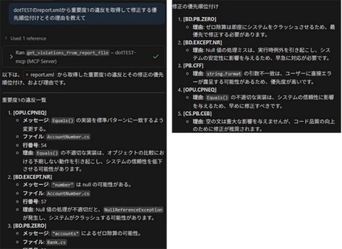 今回の新版では、MCP(Model Context Protocol)サーバー拡張機能が追加され、GitHub CopilotをはじめとするAIエージェントやLLM(大規模言語モデル)ベースのコーディングアシスタントとの連携に対応した。静的解析結果へ直接アクセスして、検出された違反の確認、推奨事項に基づく重要度の判断、具体的な修正案の提示などを行えるほか、ユーザーガイドを参照して機能を説明してもらったり、具体的な問題解決方法を提案してもらったり、といったことも可能になっている。