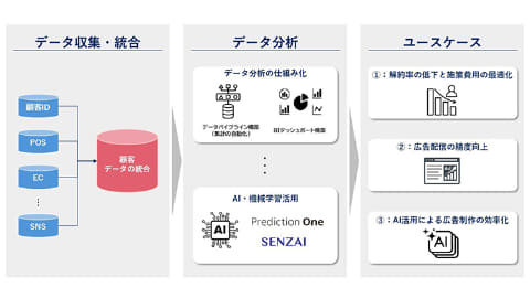 想定ユースケースとしては、AIを活用した解約抑止施策費用の最適化や、分断された顧客データの統合による、属性別ターゲティング広告の実現、ファーストパーティーデータとAIエージェント活用による広告制作の効率化などを挙げている。