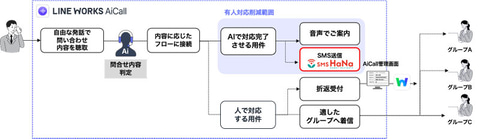 電話応対AIサービス「LINE WORKS AiCall」とSMS送信サービス「SMS HaNa」が連携