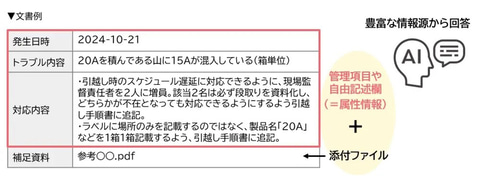 さらに、RAG(検索拡張生成)に対応したAIチャット機能も強化される。これまでは添付ファイルのみを情報源としていたが、文書に付随する管理項目や自由記述欄など、属性情報に入力された内容も情報源として回答できるようになるため、生成AIが回答する際の引き出しが増え、より精度が高く、幅広い情報を提供できるようになるとしている。
