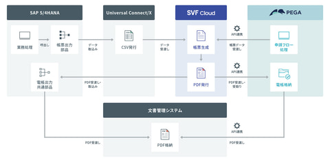 スクウェア・エニックスの新たな基幹システムは2023年5月から運用を開始しており、現在では、会計コアであるSAP S/4HANAから出力される会計関連の帳票に加え、Pega Platformから発行される請求書、見積書、発注書などの各種帳票が、すべてSVF Cloudを経由して出力されている。