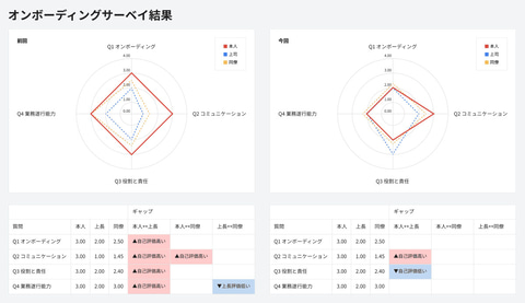 さらに、入社した社員のコンディションをリアルタイムで把握し、個別フォローに活用可能。また、オンボーディング状況を複数の視点で可視化し、入社後のギャップの把握や適切な支援体制の構築、改善に役立てられるとした。