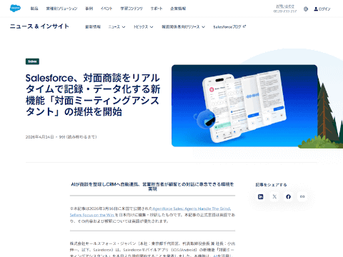 Salesforce、モバイルアプリで商談をリアルタイムで記録・データ化する新機能「対面ミーティングアシスタント」を提供