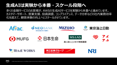 こうしてAWSでは、Bedrockを中心にチップからアプリケーションまでにわたってAIの構築を支援している、と鶴田氏。「生成AIについても、昨年から多くのお客さまで本番稼働をし始めており、今年に入ってスケールの段階に来ていると認識している」。