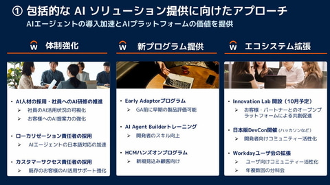 また、グローバルで展開していたアーリーアダプタープログラムを国内でも開始し、一般提供前に製品を評価できるようにするほか、AI Agent BuilderのトレーニングやHCMハンズオンプログラムなどの新プログラムも提供する。
