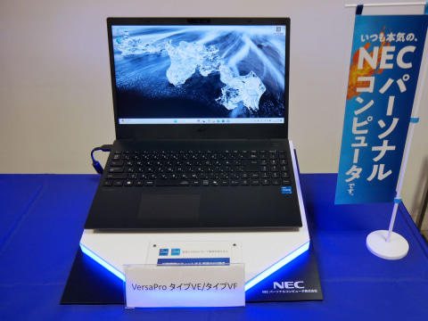 また、同時に発表したVersaPro タイプVE/VFも、15.6型のビジネスノートPCで、インテル 第13世代Coreプロセッサーを搭載するとともに、DDR5メモリーを搭載。Webミーティング機能や、ロングバッテリーモードおよびスマート充電といったAIバッテリー管理機能(PC設定ツール)など、NECオリジナルの機能も搭載した。