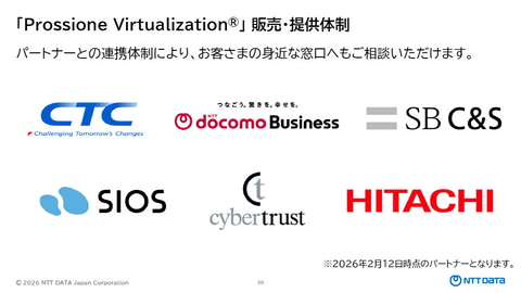 販売/提供はNTTデータ自身が行うほか、今回新たにパートナープログラムに参加した日立製作所(以下、日立)を含め、6社のパートナー企業とともに販売/提供を行っていく。