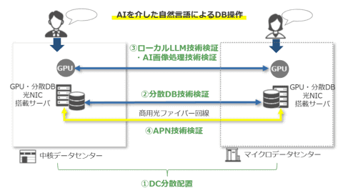 期間は2025年10月から2026年3月まで。当初は、九州の2拠点にデータセンター機能を配置し、分散させたデータベースサーバーが連携して適切にAI処理が行えるか確認する。この際、一般的な電気信号による通信ではなく、光信号を用い、いわゆるAPNを構成する。