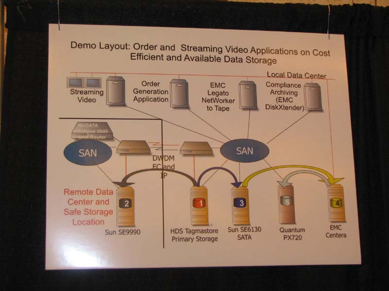 ビデオストリーミングを実現するシステム構成。各社のディスクストレージにまたがるデータのミラーリング、レプリケーション、アーカイビングが行われていた