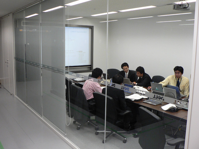 カンファレンスルーム。打ち合わせやデモ、教育が可能。12席用意されている