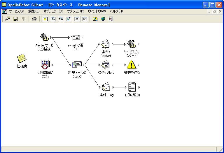 アイコン化されたタスクを配置することでワークフローを作成できる