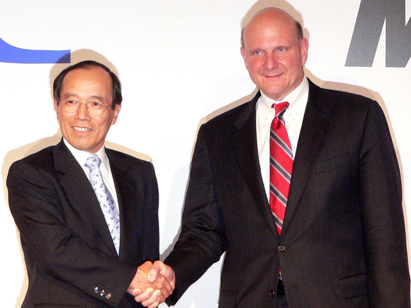 NECの矢野社長(左)とMicrosoftのバルマーCEO(右)