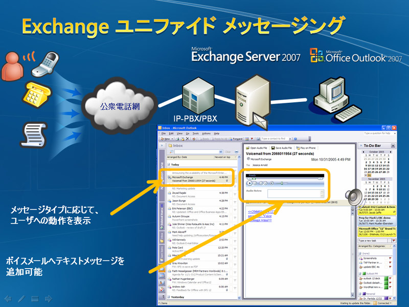 Exchange Serverは、PBXを経由して音声でもメールを読み上げてくれる