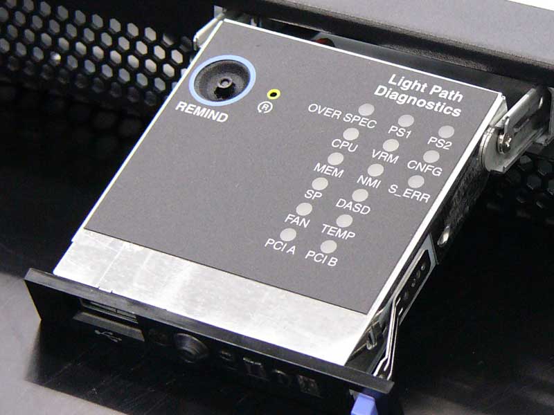 Light Path Panelのアップ。異常があった個所をLEDで知らせる。OSに依存しない動作が可能だ