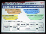 富士通経営執行役常務サービスプロダクトビジネスグループ長・石田一雄氏は、「企業価値を高めるという観点でのソリューションを追加した。安心安全という領域が、単なるウイルス対策にとどまらず、データセンターやオフィスの立地、継続性などへと広がり、ITガバナンスという観点でも注目を集めている」として、安心安全ソリューションの対象が拡大していることを示す。
