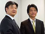 ウイングアークの内野弘幸社長(右)と日本オプロの里見一典社長(左)