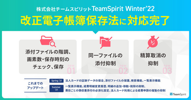 クラウド型業務支援サービス「TeamSpirit Spring'21」提供、電子帳簿保存法改正を受けた機能強化を実施