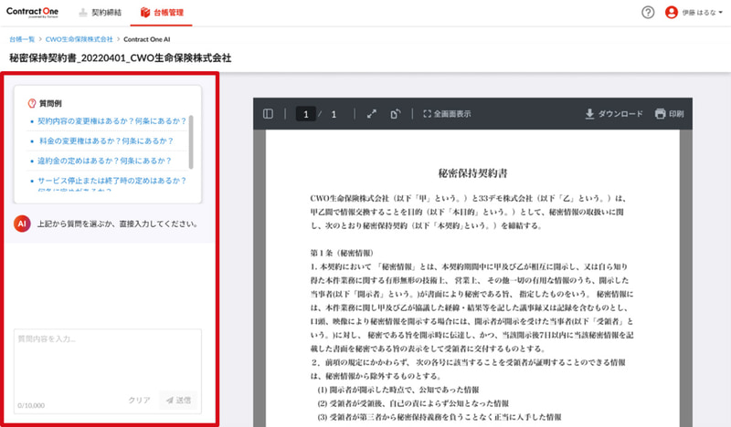 Sansanの業務契約支援クラウド「Contract One」、Azure OpenAI Serviceを利用した契約内容の要約機能を提供
