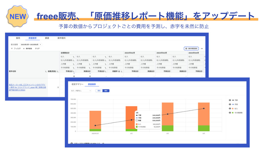 販売管理クラウド「freee販売」、進行中案件の原価実績を自動的に可視化する新機能を提供