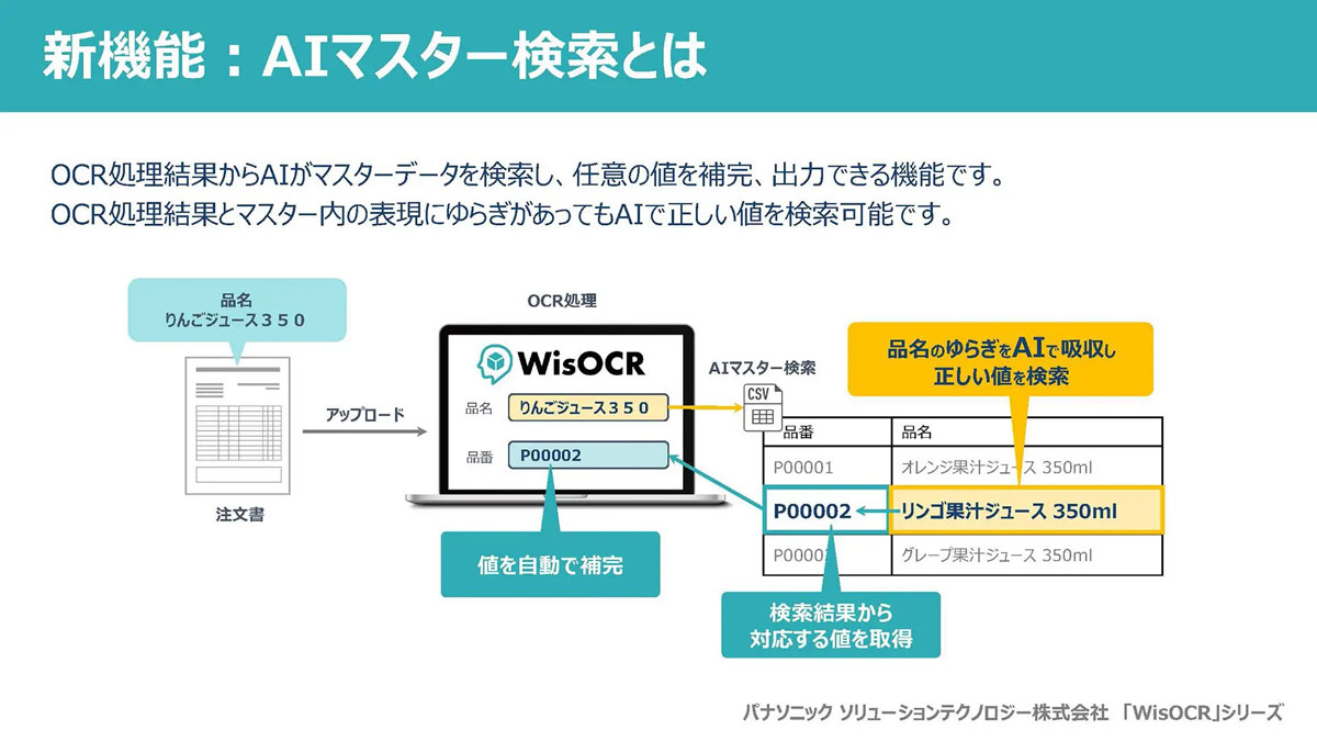 パナソニックのAI-OCR「WisOCR for 注文書・請求書」、認識箇所の事前設定なしで基本情報をデータ化可能に