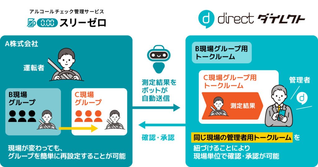 現場向けビジネスチャット「direct」、建設現場向け機械管理サービス「Archシリーズ」と機能連携
