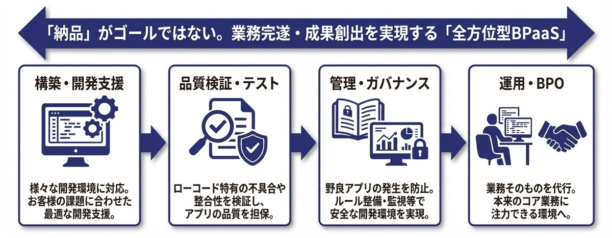 EGテスティングサービス、ローコードによるアプリ開発から運用、BPOまでを支援するサービス