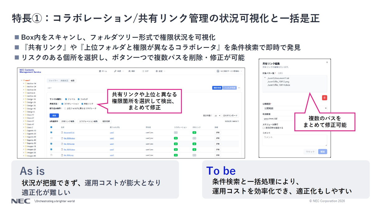 NEC、Boxの権限設定や共有設定を可視化し運用効率やセキュリティの向上を図る新サービス